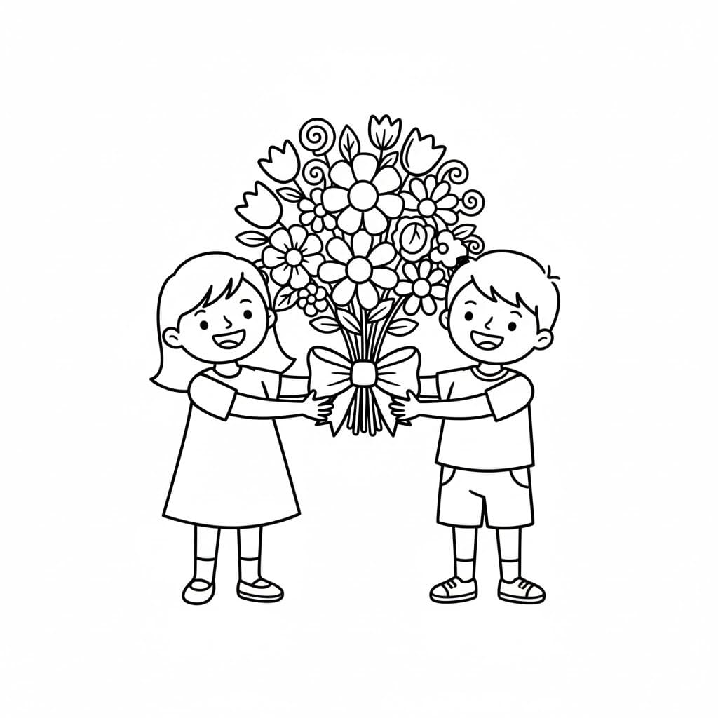 Fise de Colorat cu Buchet de Flori 6