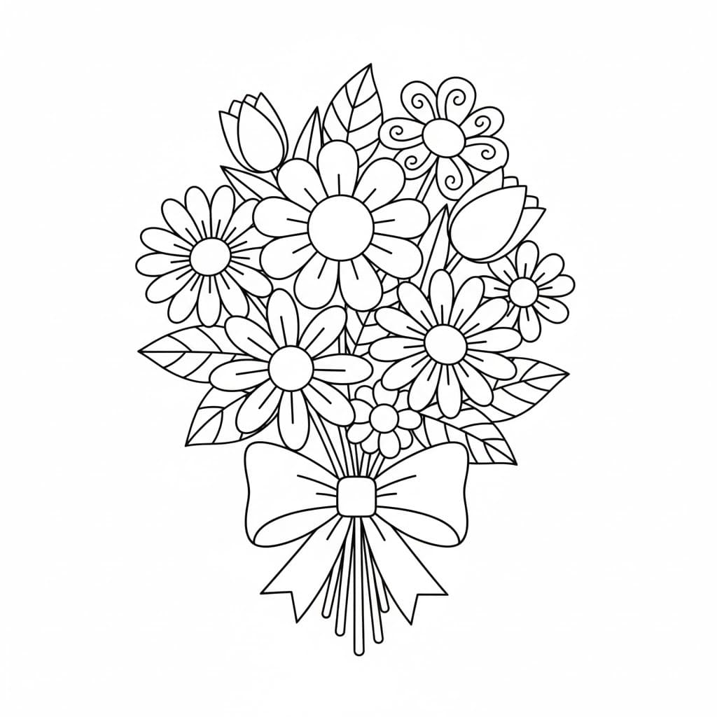 Fise de Colorat cu Buchet de Flori imprimabil gratuit