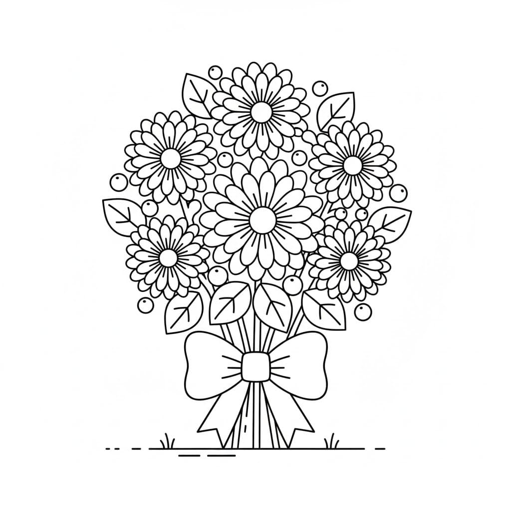 Fise de Colorat cu Desenează Buchet de Flori imprimabile pentru copii