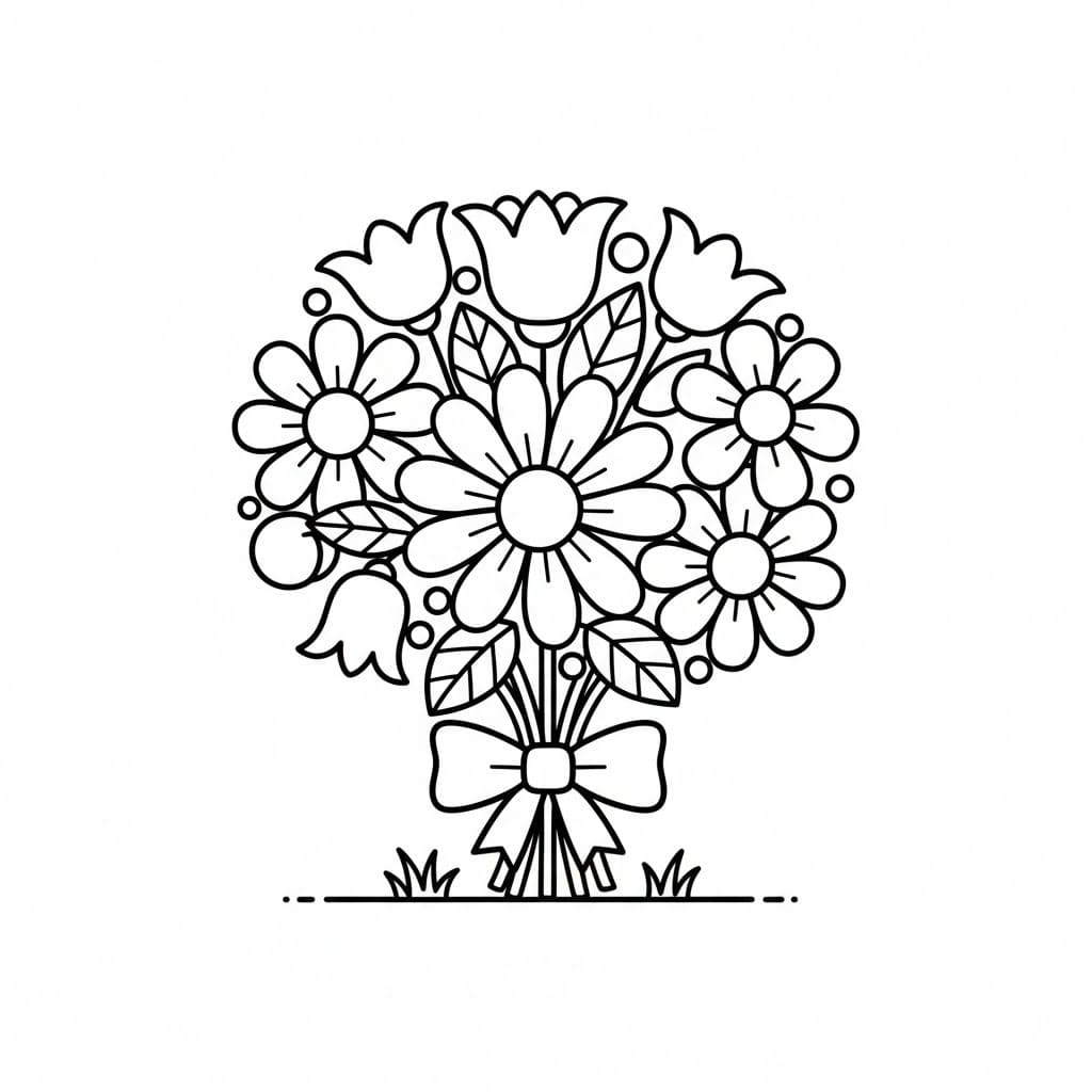 Fise de Colorat cu Desenează Buchet de Flori simplu