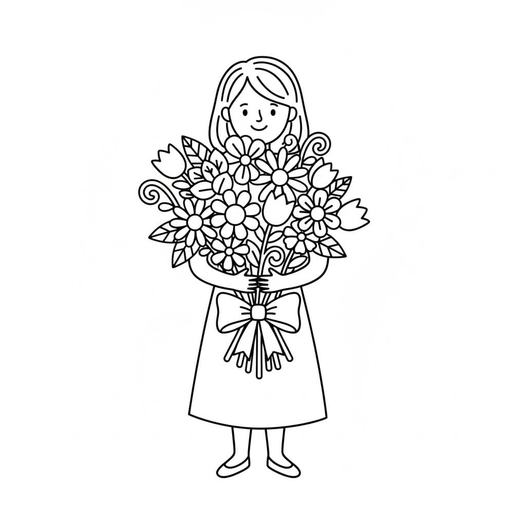 Fise de Colorat cu Desenează Buchet de Flori uşor
