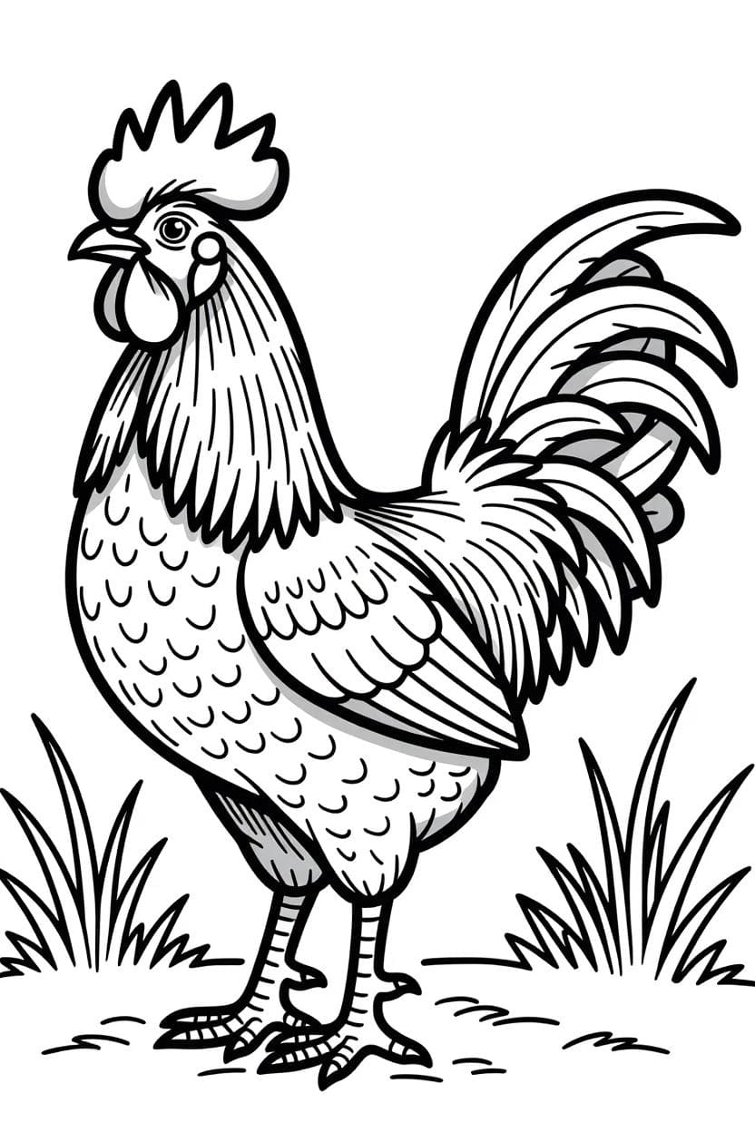Fise de Colorat cu Desenează Cocoş simplu la copii