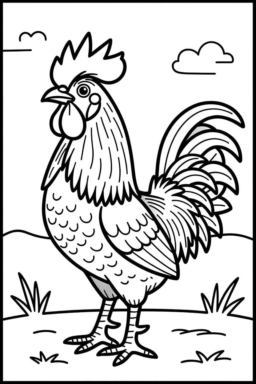 Fise de Colorat cu Desenează Cocoş uşor la copii