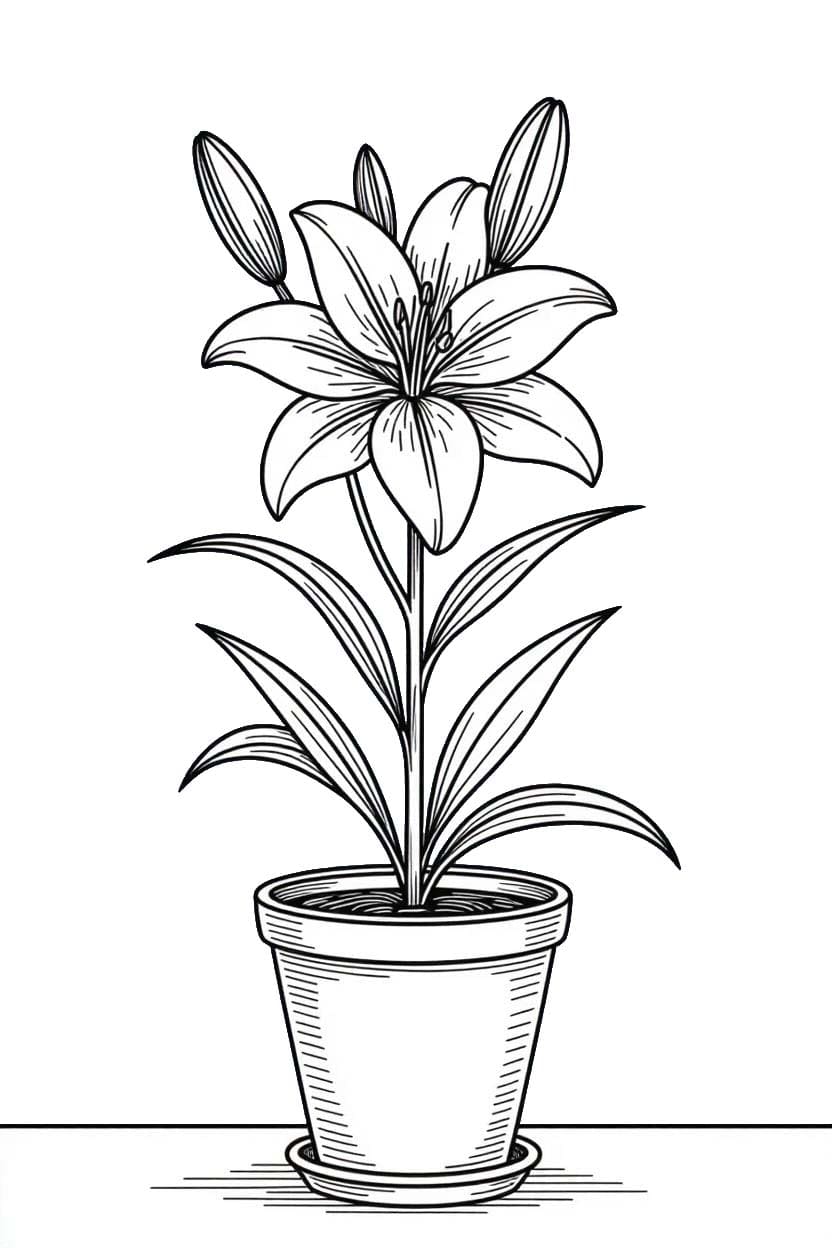 Fise de Colorat cu Desenează Ghiveci de Flori bazic la copii