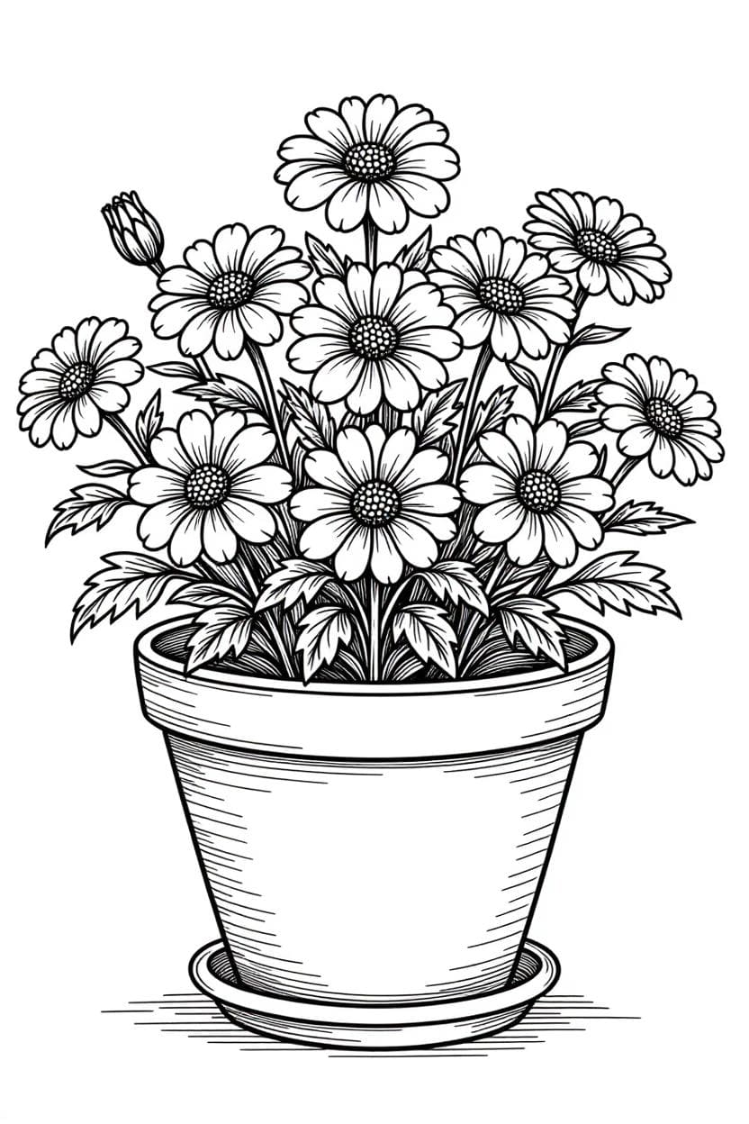 Fise de Colorat cu Desenează Ghiveci de Flori simplu la copii