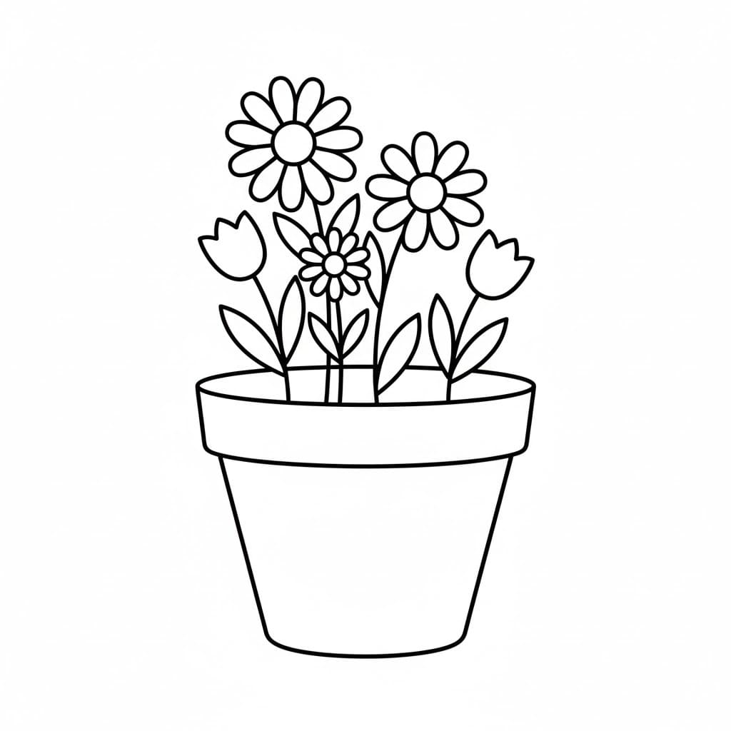 Fise de Colorat cu Ghiveci de Flori gratuit