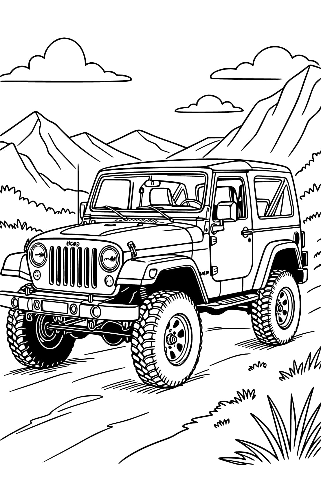 Fise de Colorat cu Desenează Jeep uşor la copii