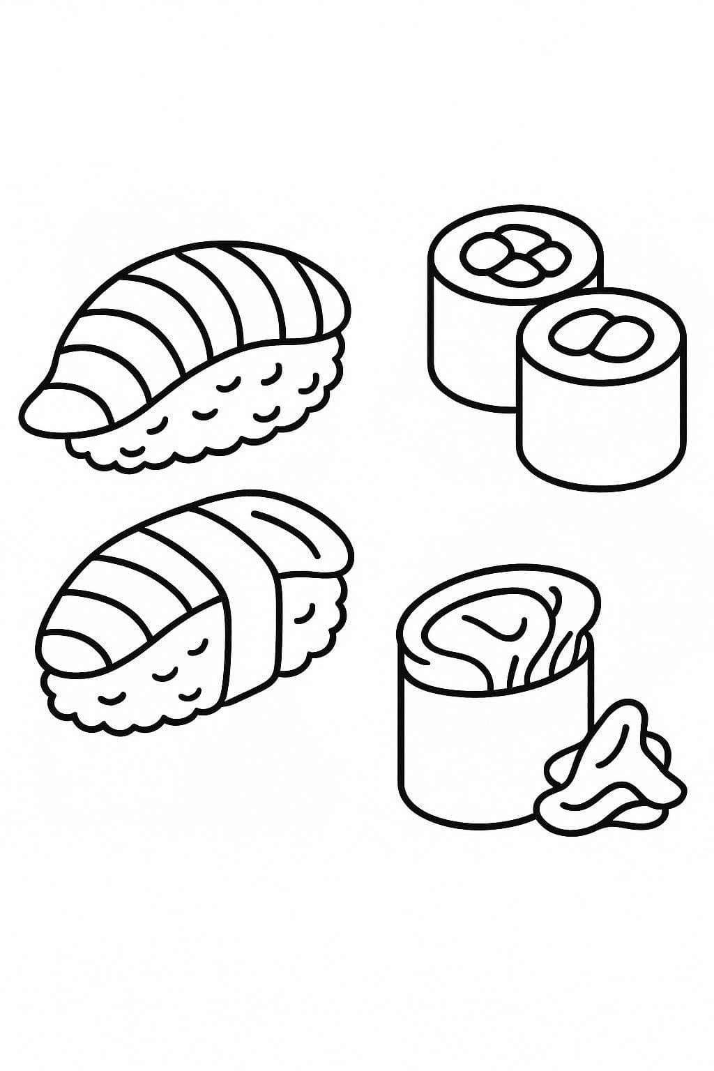 Fise de Colorat cu Desenează Sushi uşor la copii